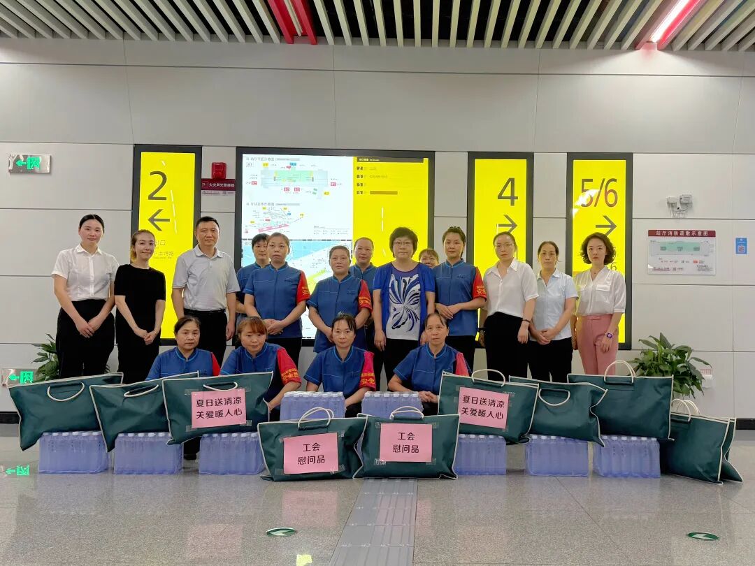 项目现场,乐梅向坚守岗位的一线轨道保洁员等职工表示慰问,送上清凉饮品、防暑药品等物资,叮嘱大家做好防护、合理安排作息。她强调: