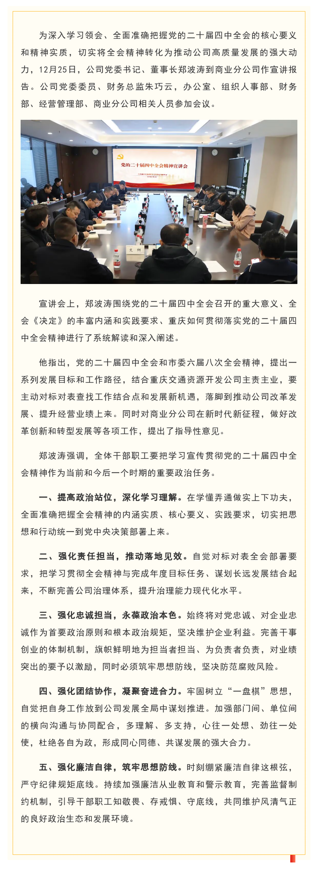 [企业要闻] 学习贯彻党的二十届四中全会精神 | 郑波涛到商业分公司宣讲党的二十届四中全会精神