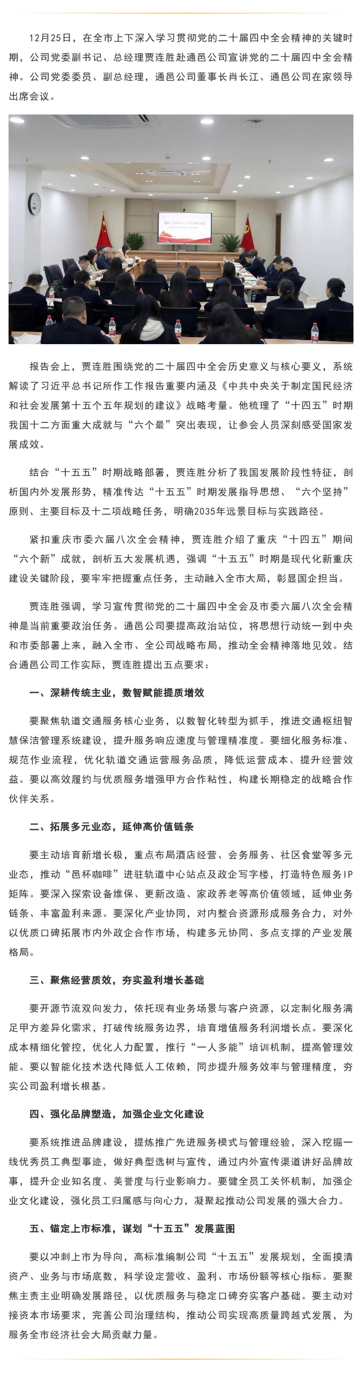 [企业要闻] 学习贯彻党的二十届四中全会精神 | 贾连胜到通邑公司宣讲党的二十届四中全会精神