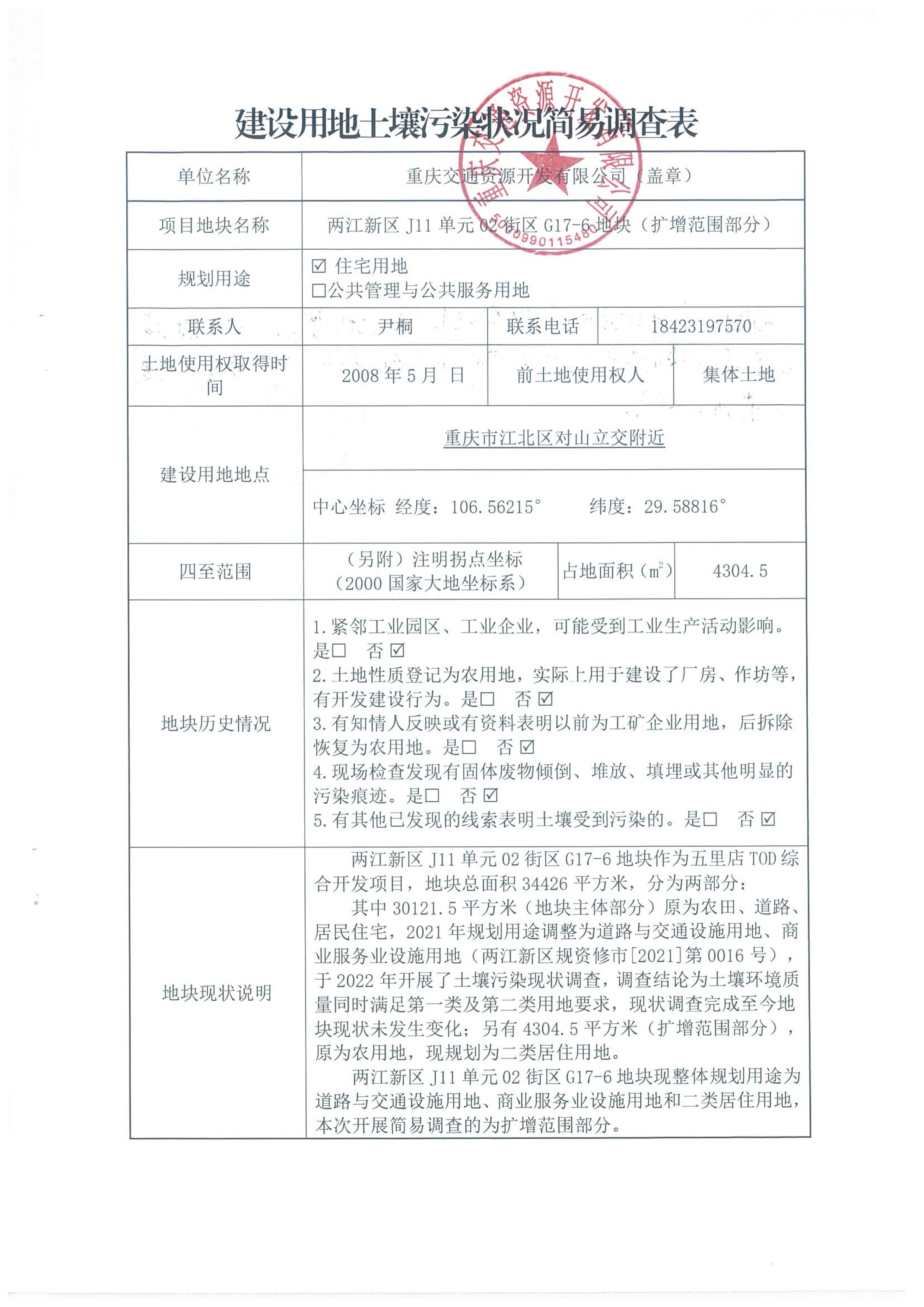 建设用地土壤污染状况简易调查表
