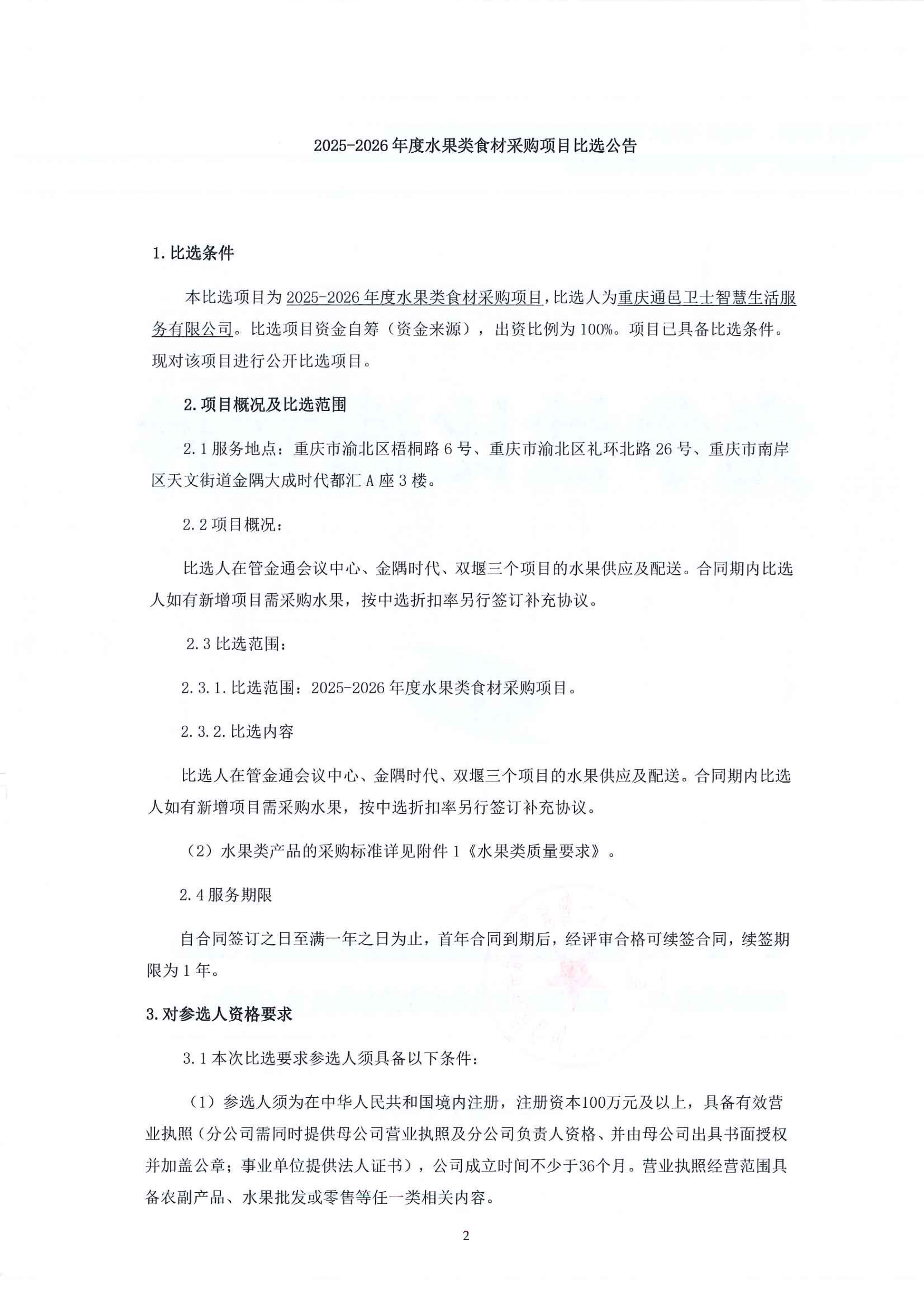 2025-2026年度水果类食材采购项目